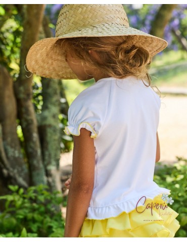 Conjunto Donald de la marca La Martinica Dos piezas: Camiseta + Braguita El lazo del pelo se vende por separado.