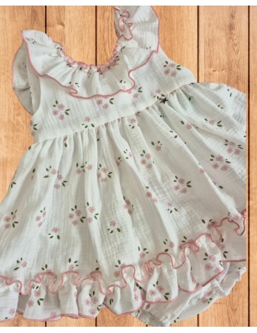 Jesusito Flores Rosas de la marca Mon Petit Dos Piezas: Vestido + Braguita